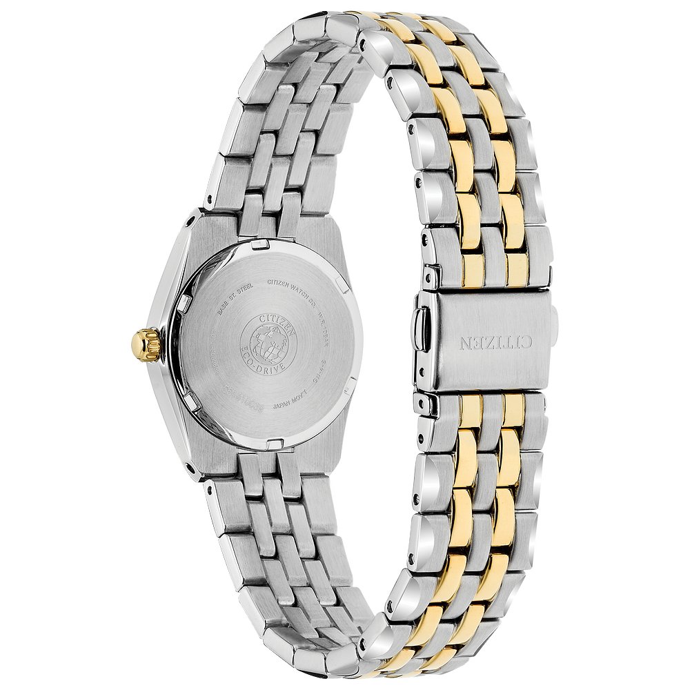 Featuring our Eco-Drive technology – powered by light, any light. Never needs a battery. Caliber number E011.