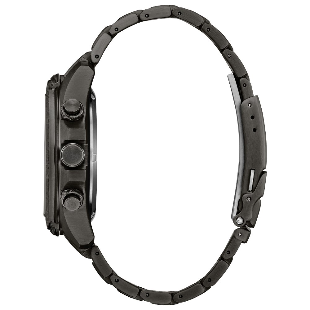 From its bold case inward, the watch is ready for action, featuring a 43.9mm stainless steel case with a gray IP coating and camo accents for durability that goes the distance. On the dial, luminous hands and markers stand out on a camo black background for high legibility, while a combination of digital and analog details ensures mission-ready wear. Two right-side pushers and an 8 o’clock crown to move the watch’s compass scale help the user operate Promaster’s high-performance function on the display, which includes a world time, chronograph, alarm, light level indicator, perpetual calendar, power save mode, charge level display, and summertime display. The limited edition Promaster is sustainably powered by any light with our proprietary Eco-Drive technology, so it never needs a battery. This high-performance watch comes in an exclusive gray tackle box with camo detailing and is water resistant to 200 meters. Caliber U822.