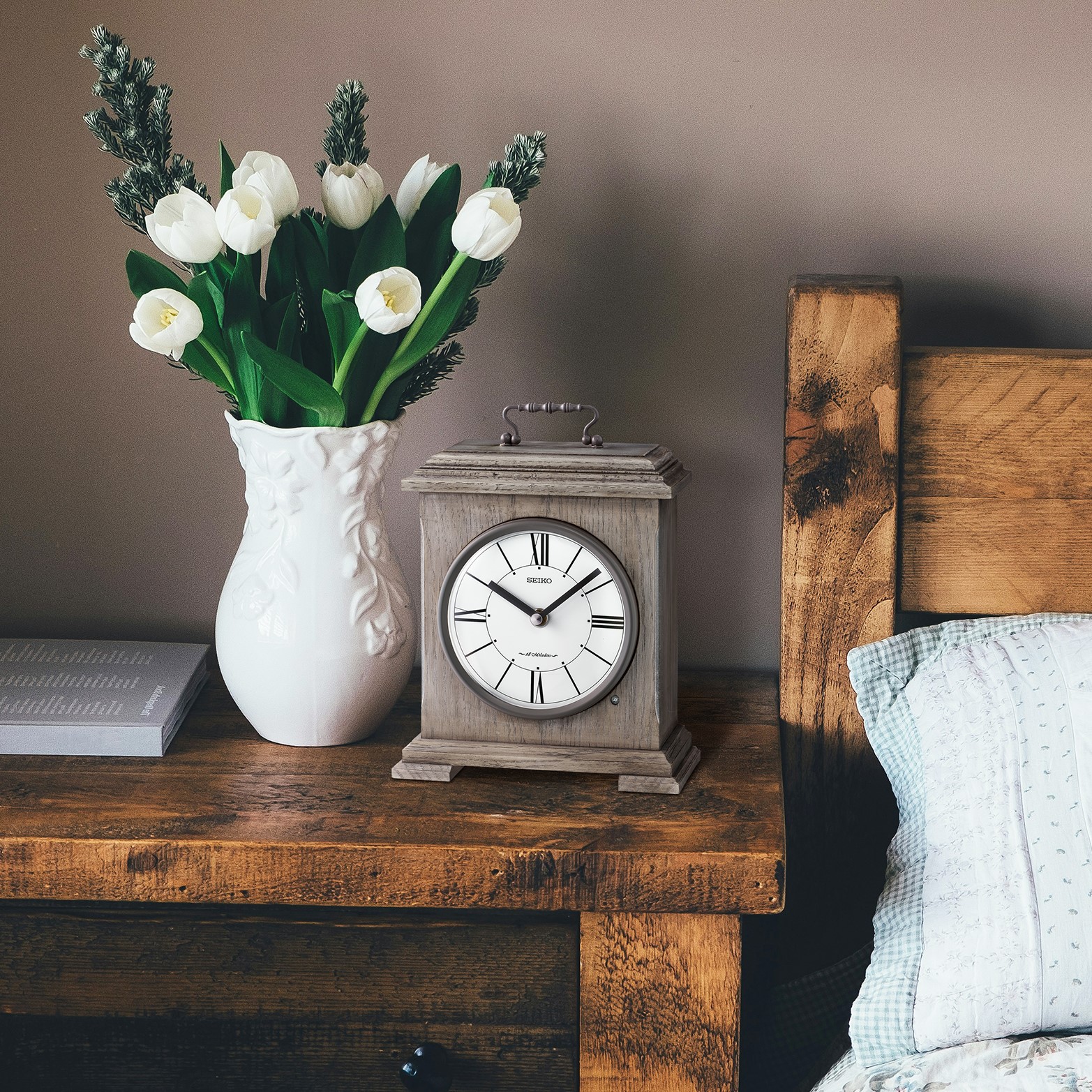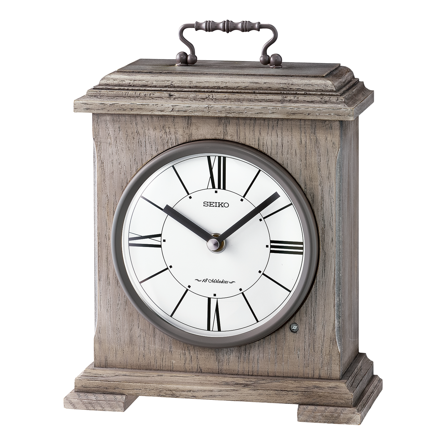 Introducing the Seiko Traditional Mantel Clock – a timeless masterpiece that seamlessly blends classic elegance with musical charm, making it the perfect centerpiece for your mantel or shelf. Crafted with a rich wooden case featuring clean lines, the Seiko Baird exudes sophistication and refinement. Its golden handle adorning the top adds a touch of luxury, elevating its aesthetic appeal. But the true magic of the Seiko Baird lies in its musical prowess. On the hour, the clock comes alive with one of 18 enchanting melodies, filling your space with beautiful harmonies. And with a light sensor that intelligently disengages all melodies when darkness falls, you can enjoy peaceful evenings without interruption. For your convenience and delight, the clock features a demonstration button, allowing you to preview its musical repertoire at any time. The one-way rotating pendulum adds a touch of whimsy, creating a captivating visual spectacle. Powered by three AA batteries (included), the Seiko Baird ensures reliable performance without the need for constant maintenance, while its compact dimensions of 9.8 x 7.6 x 3.5 inches make it the perfect fit for any mantel or shelf. Transform your living space into a sanctuary of elegance and melody with the Seiko Baird Musical Mantel Clock – where timeless beauty and musical enchantment come together to create a truly unforgettable experience. All Seiko clocks are equipped with quartz movement making it the most accurate at time keeping. Perfect for tween to adult.