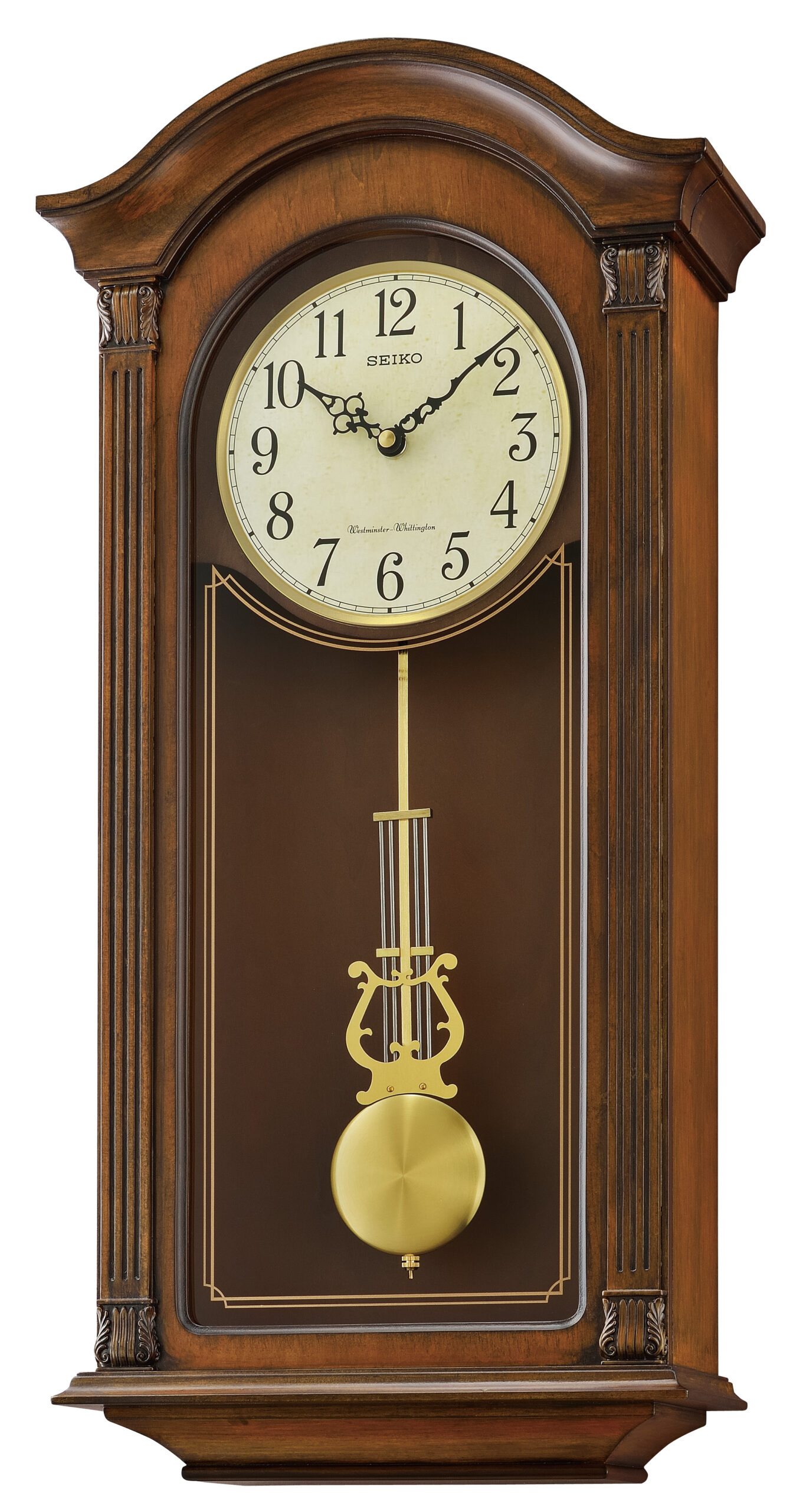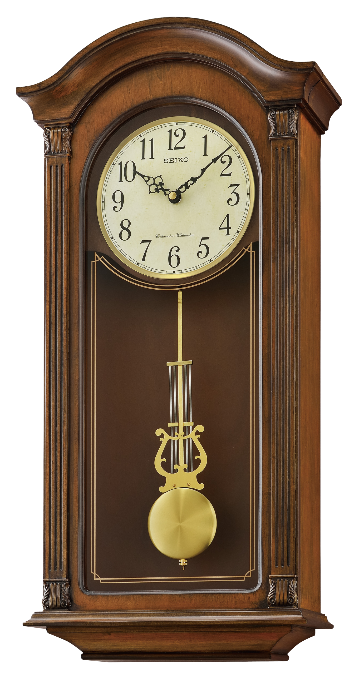 Seiko Gold Tone & Arched Wall Clock with Pendulum and Dual Chimes