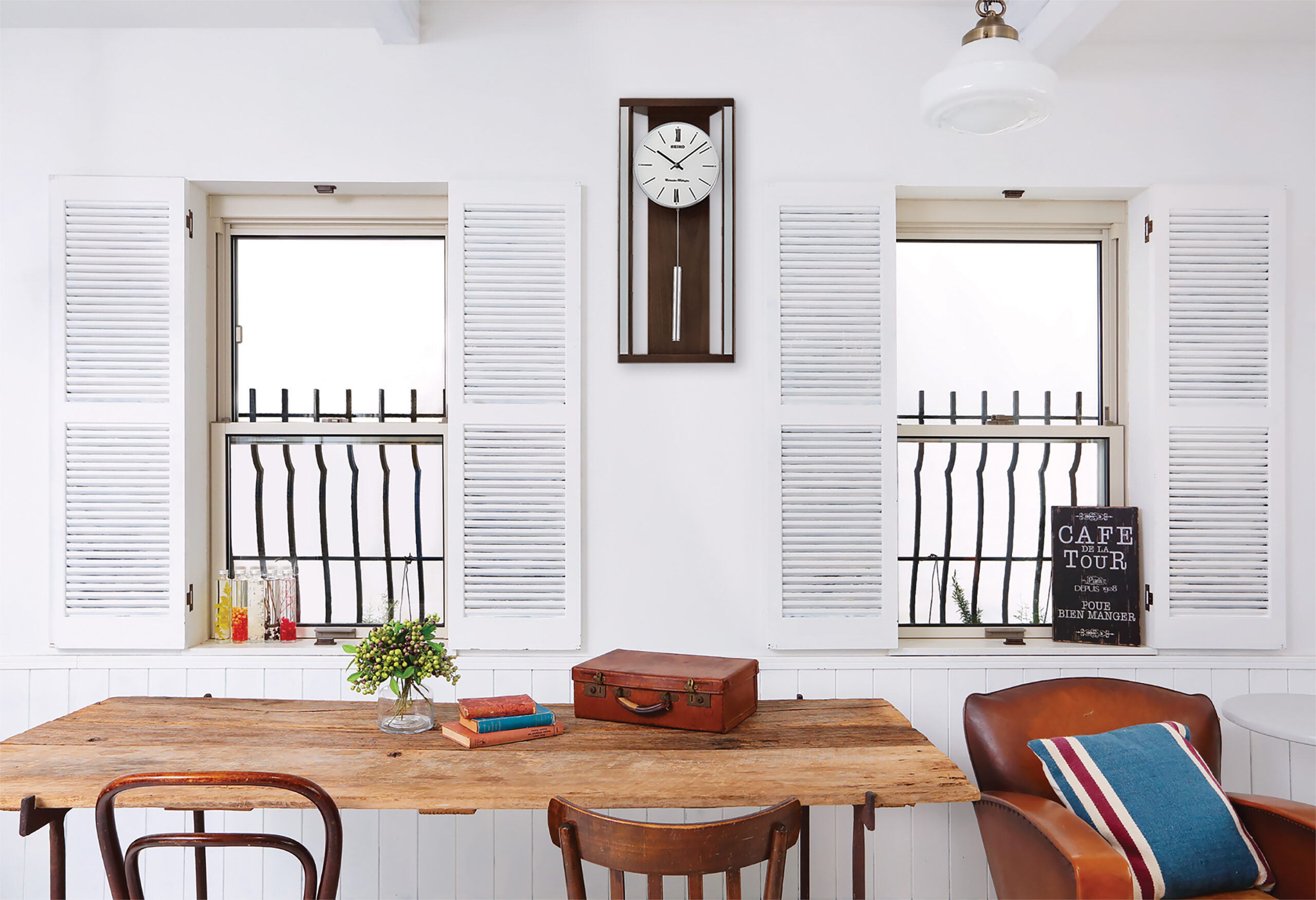 The Seiko Classic Modern Pendulum Wall Clock with dual chimes is modern, linear, and silver colored classic mid-century modern style clock. This pendulum wall clock modern sophistication to any space. It features a brown wooden case with silver colored accents as well as a sleek pendulum. It chimes every quarter-hour with hourly strikes and has adjustable volume that can be silenced during the night. Powered by 1 C battery (included). Overall dimensions: 25 X 11 X 4.5 inches. Quartz crystal movement allows for the most accurate time keeping.