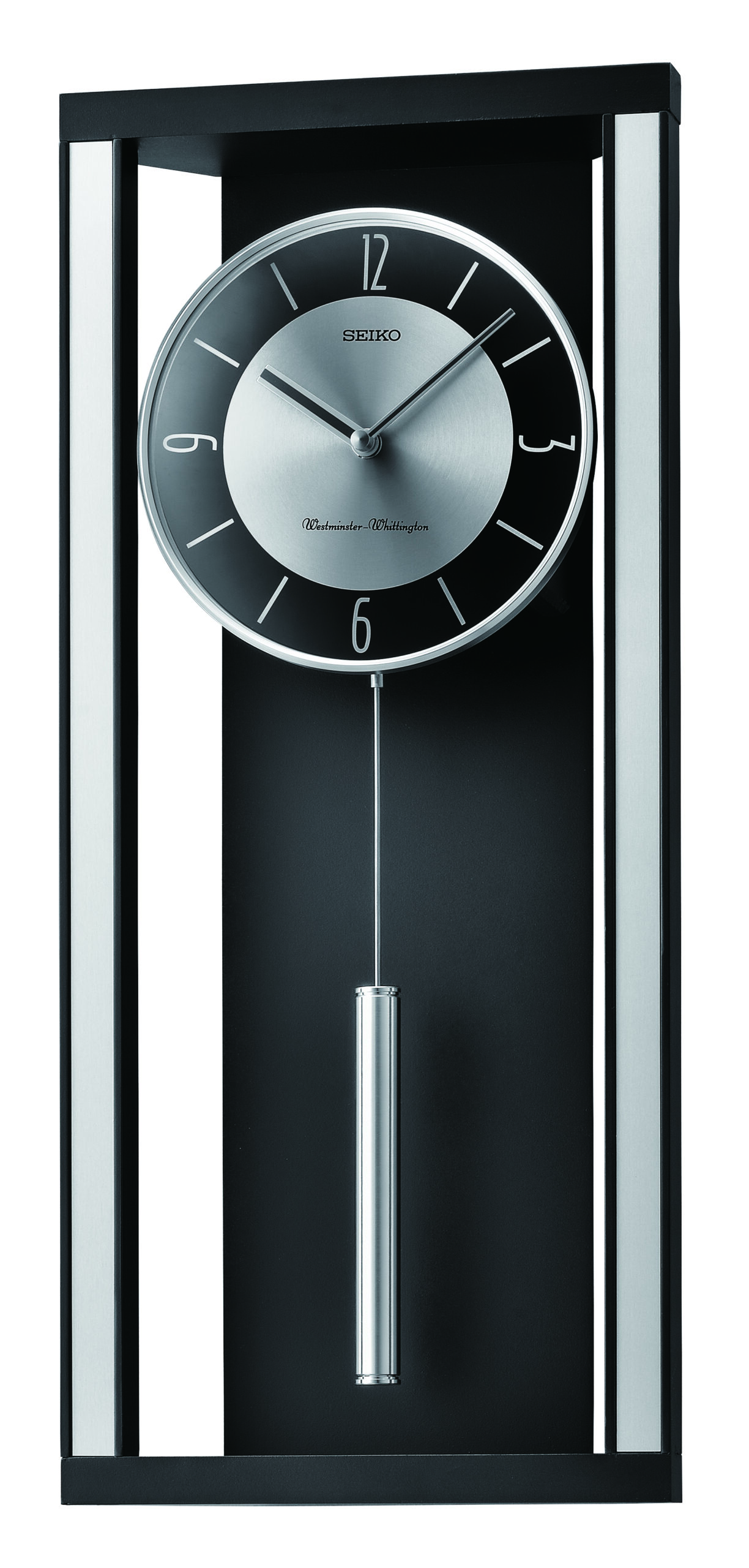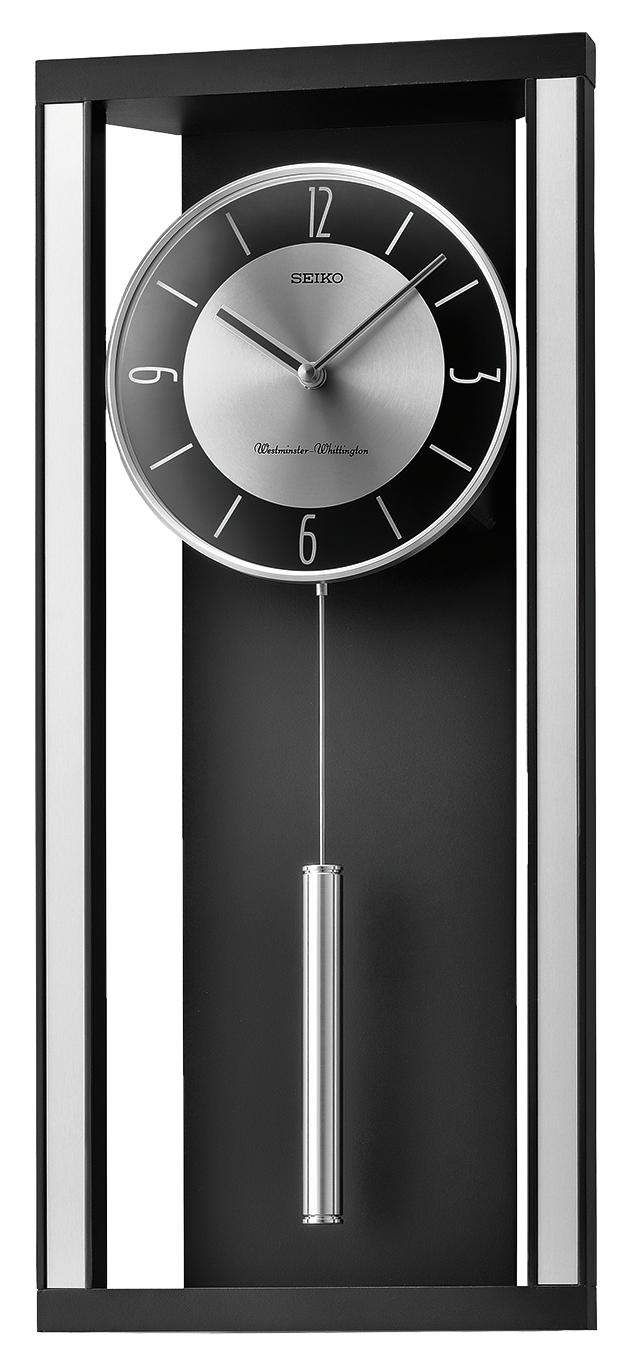 Seiko Modern Noir Wall Clock with Pendulum and Dual Chimes