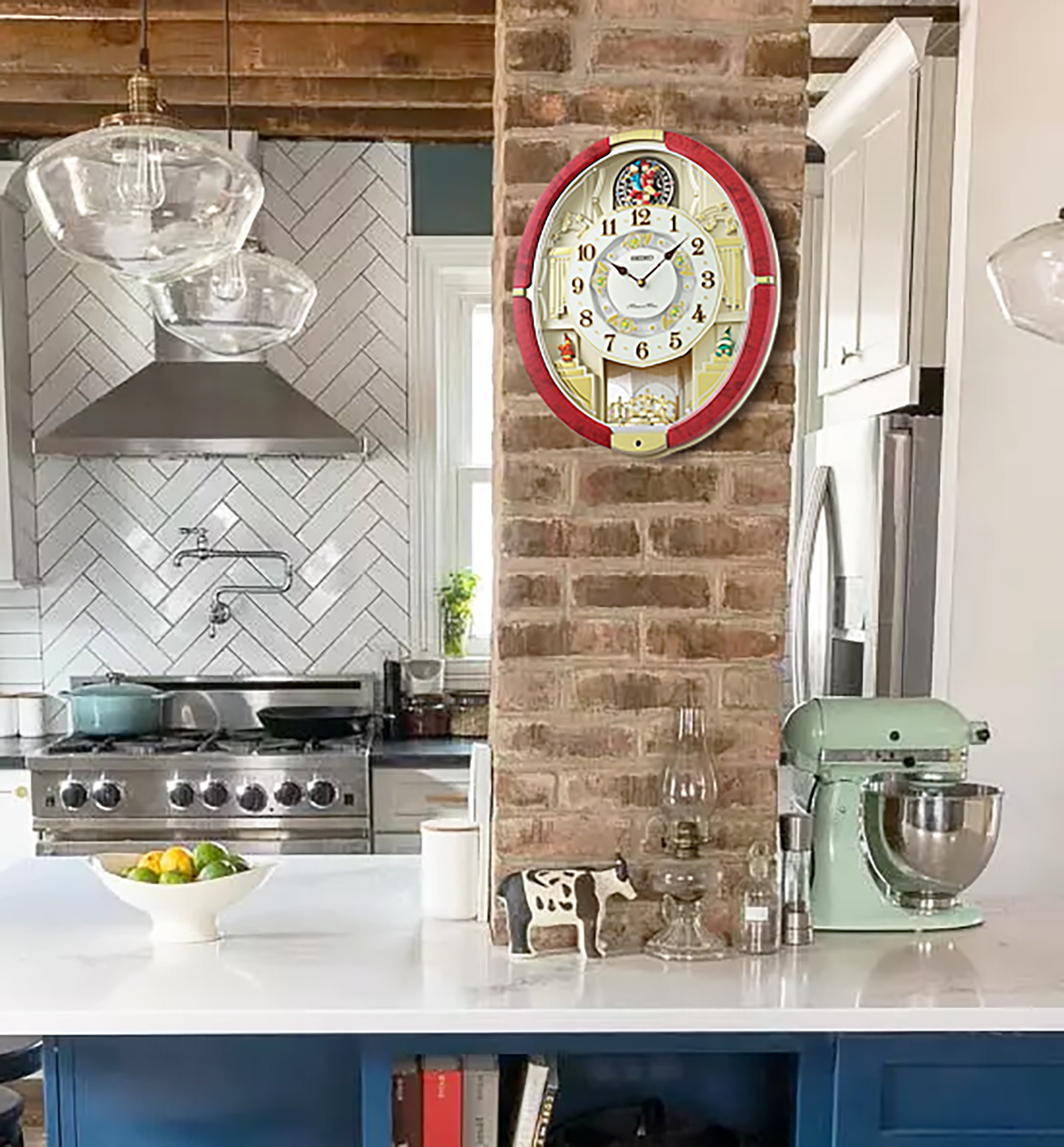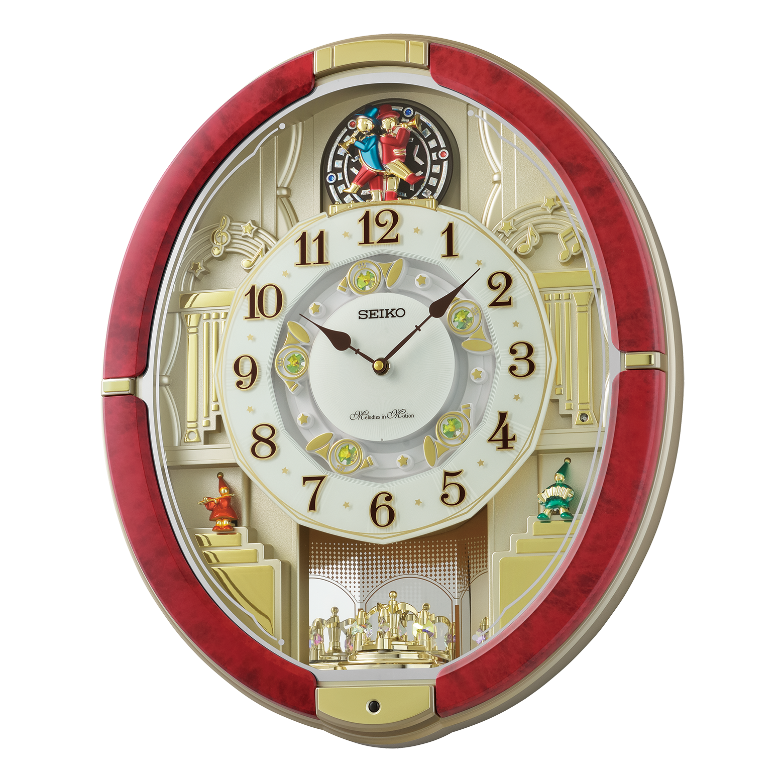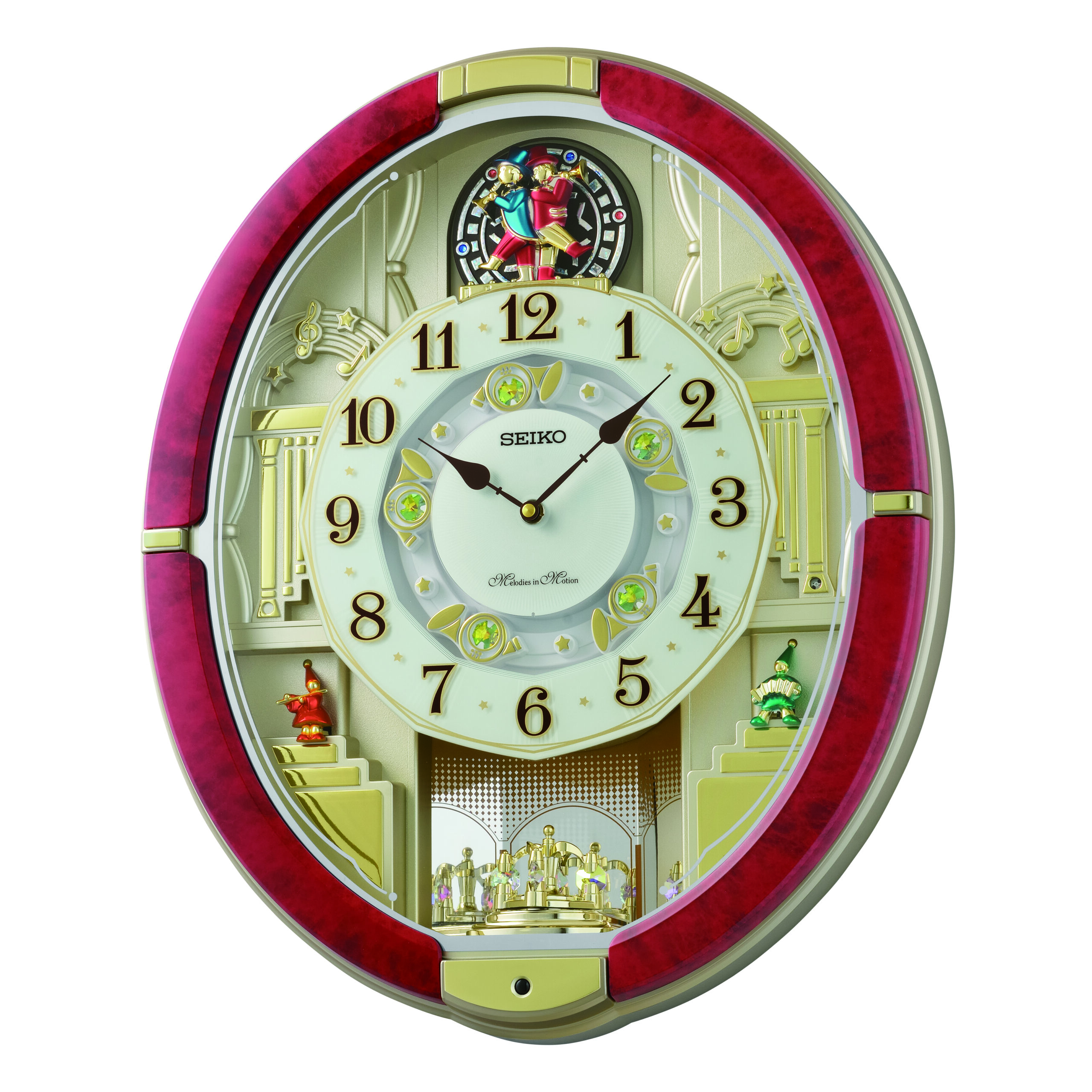 Seiko’s Melodies in Motion Clocks are enchanting and magical. This clock highlights everything we love about music. On the hour, the dial opens and turns, and plays one of thirty of the finest quality sound melodies . It has a marble pattern red case with golden accents, a demonstration button, and volume control. This clock is enclosed in glass and has an off/on switch. This clock will light up your house year-round. Powered by a combination of 4 C & 1 AA battery (included). Overall dimensions: 18.3 X 15.1 X 4 inches. Perfect for tween to adult.