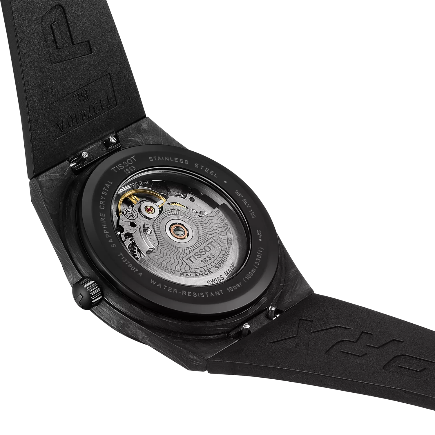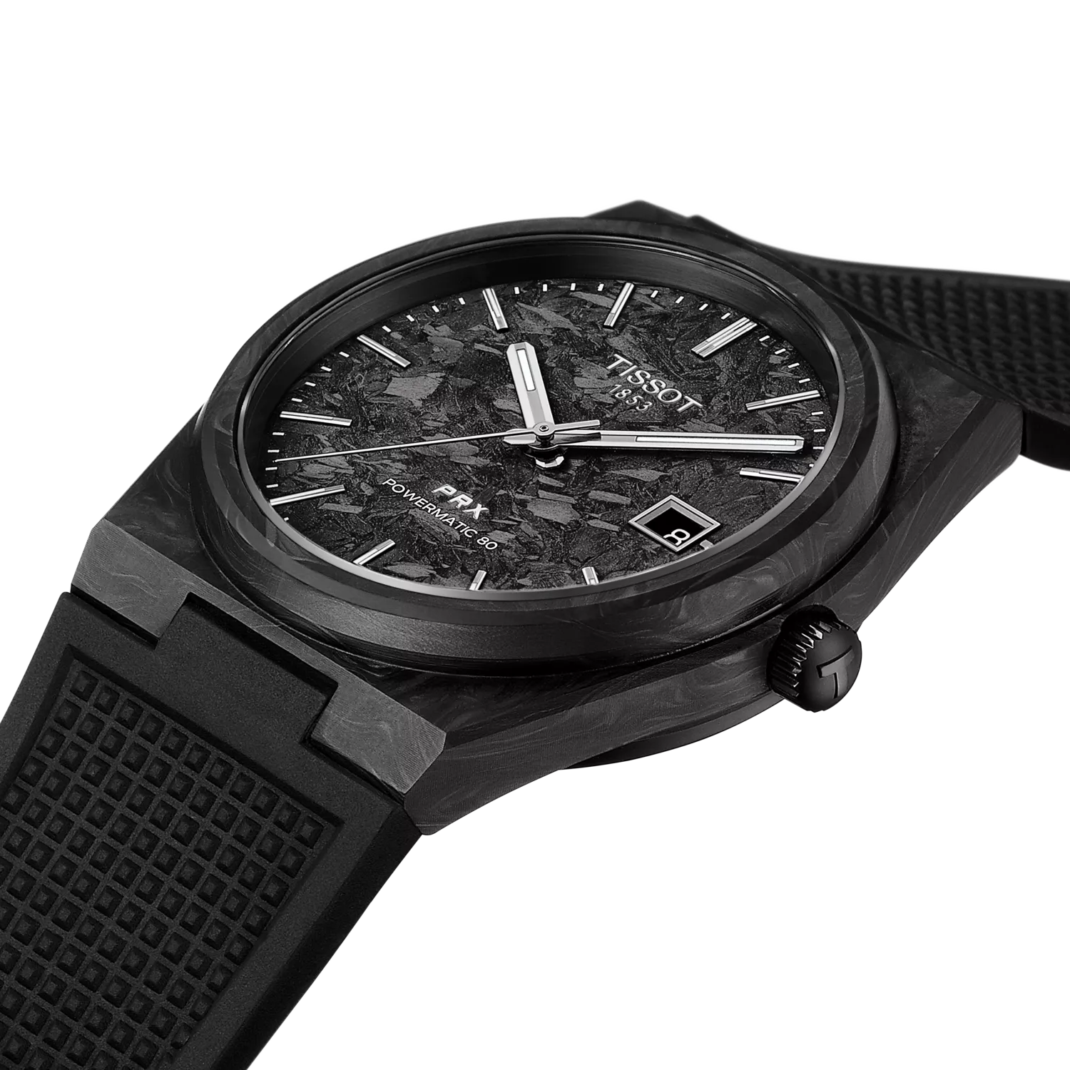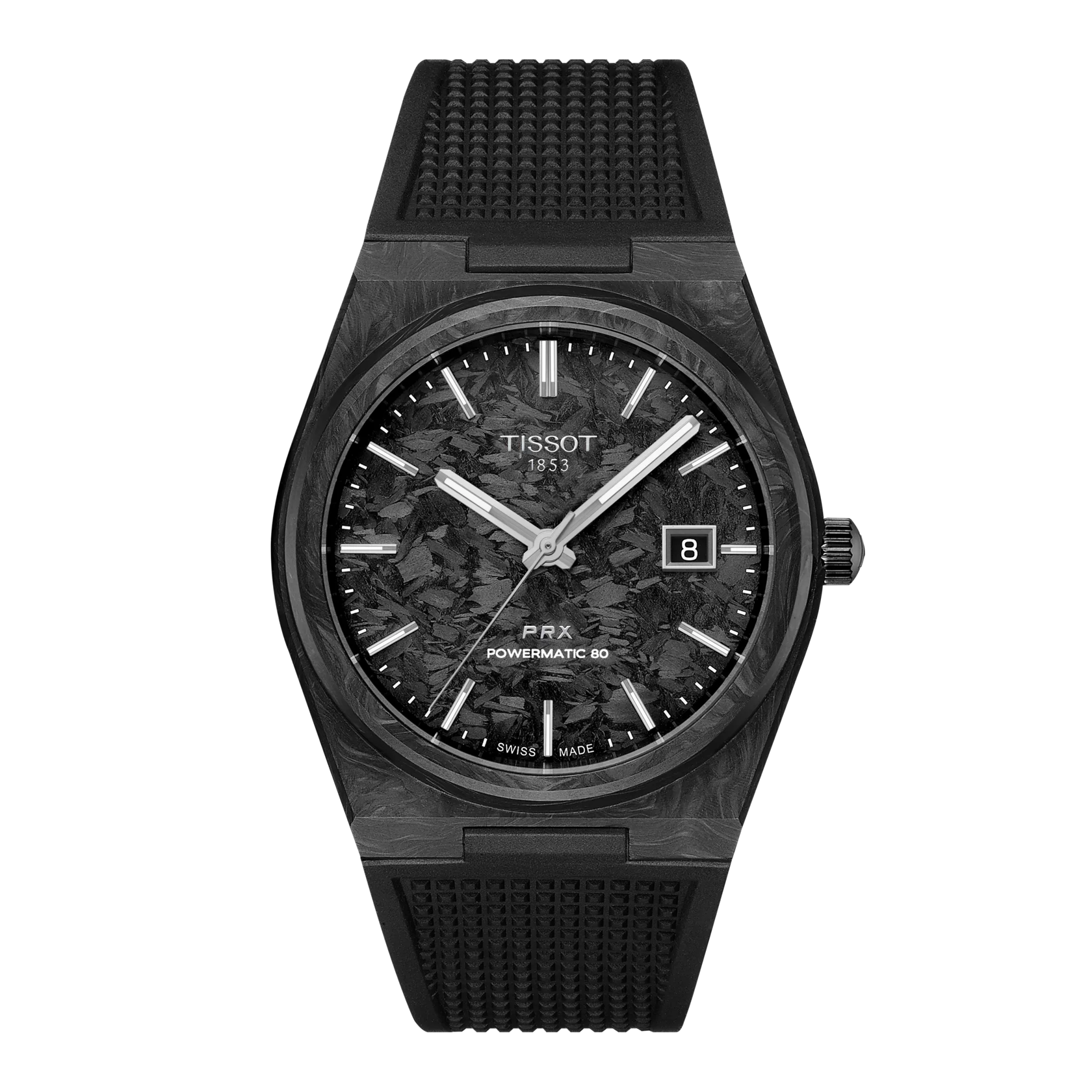 Case: Black and grey marbled forged carbon case with 316L stainless steel